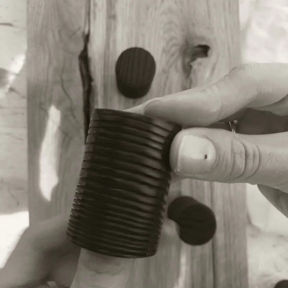 When touching the cap, we touch the history of the tree it once was.