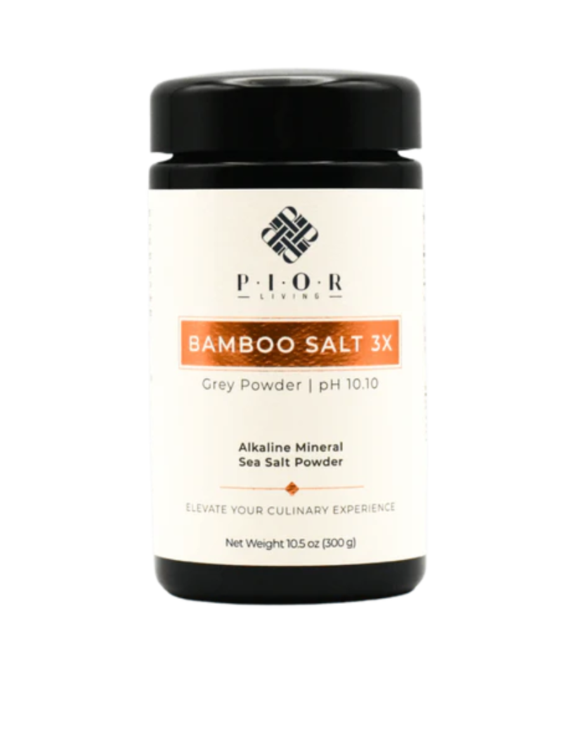 Bamboo Salt is the highest quality salt on earth and Bamboo Salt 3X, with its mild sulphur taste, is ideal for cooking and seasoning. Toxin free, alkaline (10.10 pH), and rich in 70+ minerals, PIOR Living's grey bamboo sea salt is handcrafted over 7 days honoring ancient Buddhist monk traditions and roasted 3 times at 1472°F to enhance the healing benefits of salt.