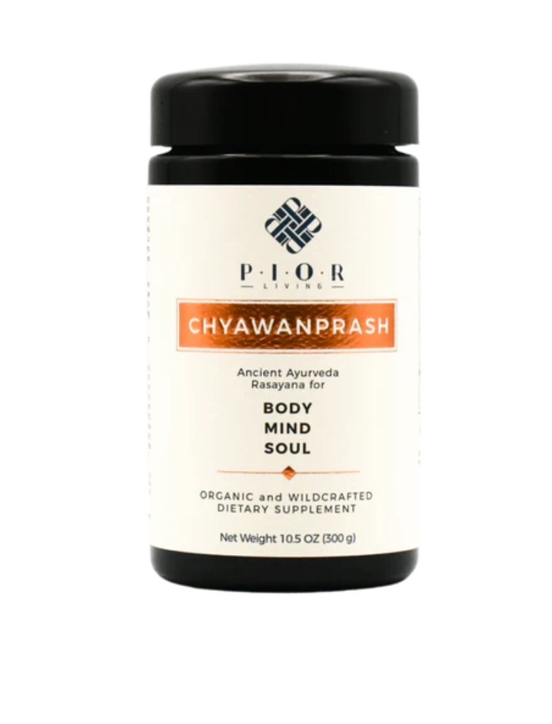 PIOR Living Chyawanprash (“chah – vahn – prash”) is an ancient ayurvedic herbal jam that blends 31 organic and wild-harvested spices and herbs with honey, Ghruta ghee, jaggery, and black sesame oil to create a nourishing jam that rejuvenates the body and mind and supports overall wellness. As the foremost ayurvedic rasayana (rejuvenative therapy), Chyawanprash is one of most powerful and popular supplements for regular use in ayurvedic medicine. It's beloved for its ability to build ojas (vitality) and stimulate healthy cellular rejuvenation and tissue formation throughout the body. ⁠From the antioxidant power in amalaki to the immuno-modulating abilities of guduchi and the calming adaptogenic effects of ashwagandha, Chyawanprash's symphony of botanicals work together in harmony to support the respiratory, circulatory, immune, and digestive systems to boost overall energy and wellness, sharpen clarity and focus, and soothe the nervous system.