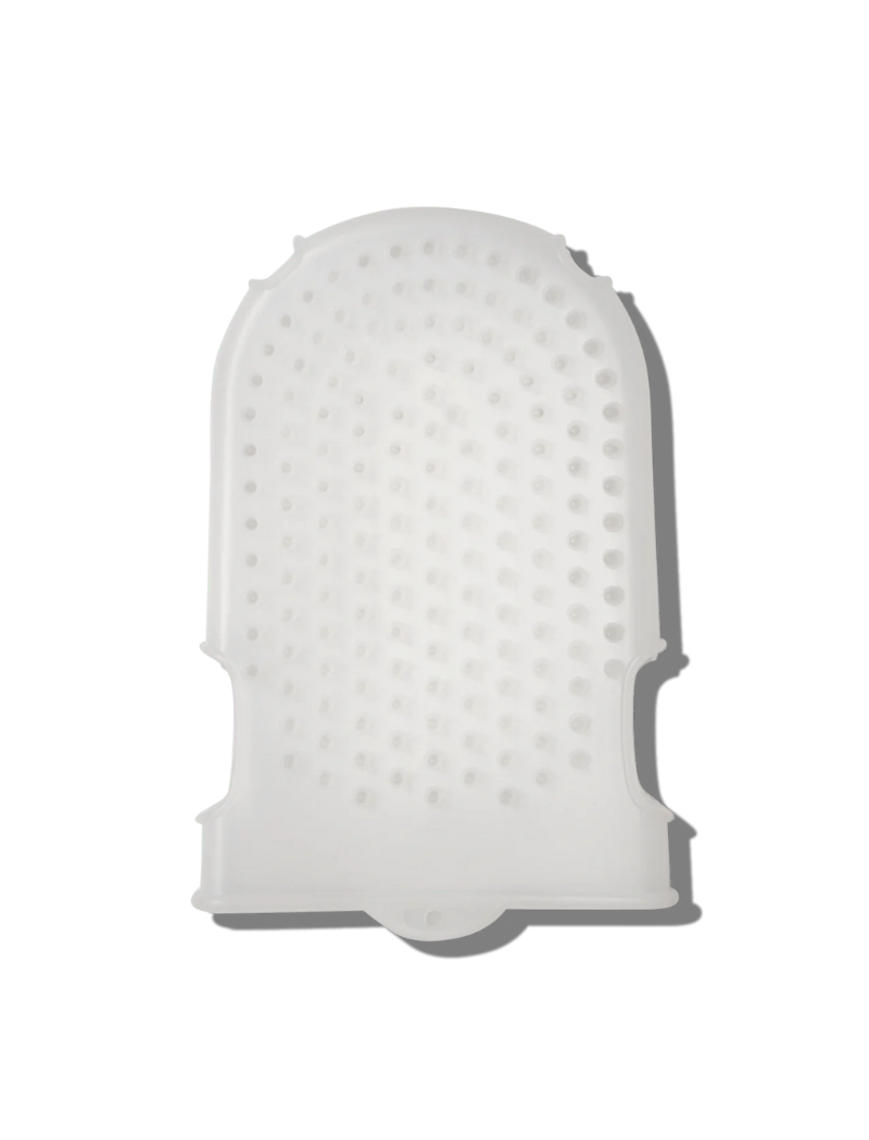 The gloriously satisfying glove is dual-sided; one side stimulates, improves micro-circulation, helps eliminate stubborn accumulated fat and enables a better absorption of the active ingredients, and the other aids in the exfoliation process.
